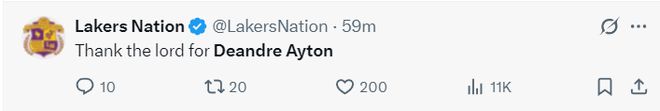《湖人国度》致谢艾顿:感谢上天让草莓视频官网在线观看得到了德安德烈-艾顿。