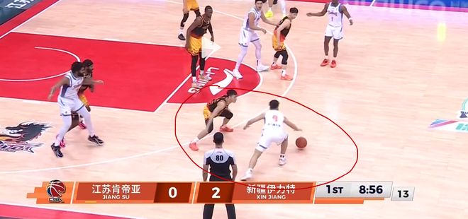 阵地战防守,庞峥麟也有出色表现。这一球庞峥麟发现队友补防后漏人,自己又去帮队友协防卡位,并且协防成功,让新疆球员吴冠希接球失误,说明他拥有不错的团队防守意识