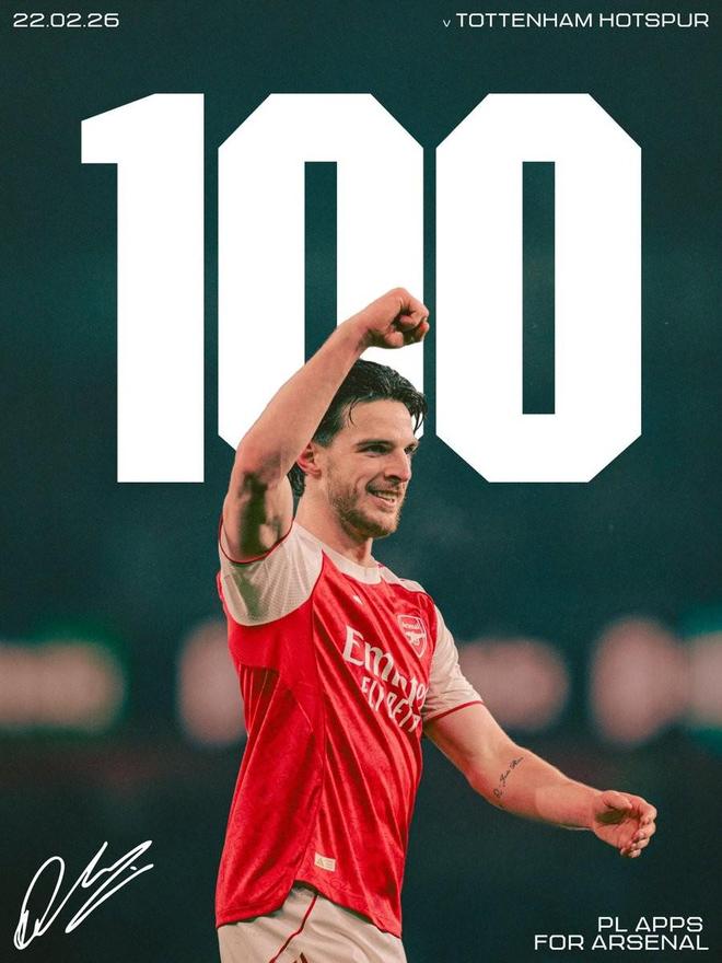 此役客场对阵热刺,赖斯首发出战,迎来阿森纳生涯在英超赛场的第100次出场。